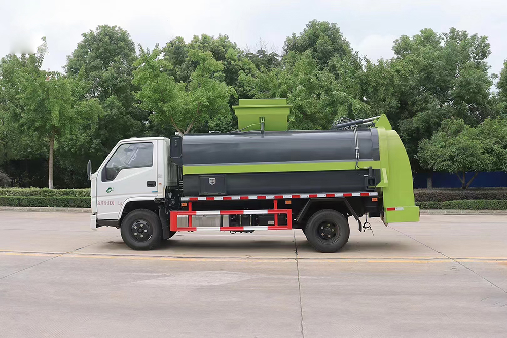 泔水裝載由垃圾桶提升系統(tǒng)完成,該系統(tǒng)具有垃圾桶鎖止結(jié)構(gòu),裝卸安全可靠。垃圾桶與垃圾投入口銜接好,保證裝卸過程中餐廚垃圾不溢撒、不遺漏。垃圾投入口與推板之間有足夠距離,推板與罐體內(nèi)表面設有密封裝置,避免餐廚垃圾投入過程及分離過程中溢到推板后方。 液壓系統(tǒng)由泵、液壓閥和順序閥以及各種功能的液壓油缸、高低壓管路組成。關鍵部件可選用原裝進口,保證產(chǎn)品工作可靠、安全。